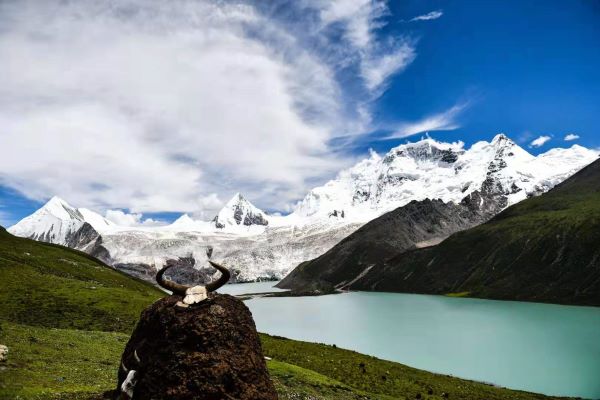 每逢盛夏,薩普山頂冰雪皚皚、雨霧繚繞,山底花紅草綠、水草豐美。由于谷大溝深、交通不便,這片嘆為觀止的冰川一直深藏閨中而鮮為人知,是一塊尚待開發(fā)的旅游處女地。