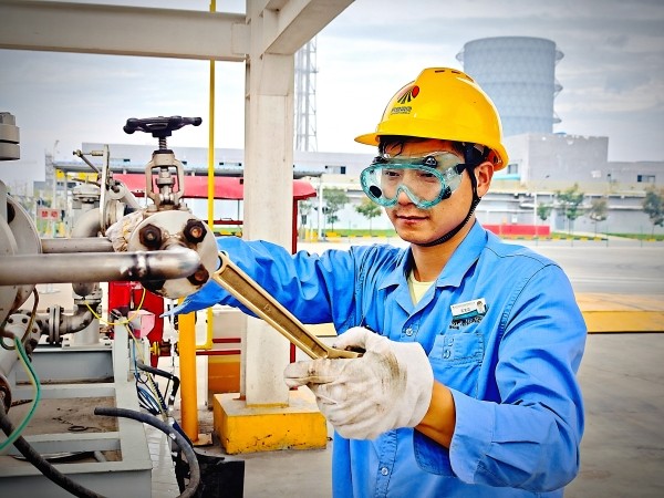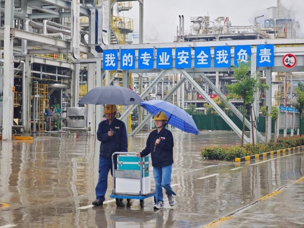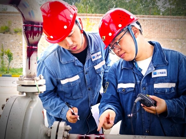 裝置間,幾抹身影格外醒目。安全帽下,對話在工具碰撞的“叮當”聲中變得模糊。檢修人員動作默契連貫,道道身影撐起一片片“不停歇”的守護。